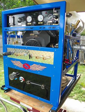 This machine is powered with a 20.5 Kohler Engine and 3MR Sutorbilt Blower which can deliver up to over 200 CFM of vacuum......and as always, over 2000 psi of working pressure and Great Heat.
